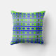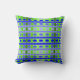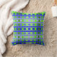 Dieses Kissen hat eine geometrische Form von Linien in den Farbtönen Blau und Grün gewebt, um eine karierte.