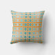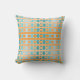 Dieses Kissen hat eine geometrische Linienführung in den Farbtönen aquamarin und orange gewoben, um ein kariertes.