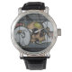Uhr, Vintage Männeruhr mit schwarzem Lederarmband