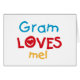 Gram Lieben Me T - Shirt, Karten, Aufkleber, Karosserietaschen, und mehr mit farbenfrohen rot, gelb und blau Text und Herzdesign. Diese Gram Lieben mir Kleidung und Geschenke werden Gram Lächeln!