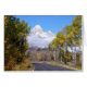 Foto der Elche Wilson Road, die in den Grand Teton Nationalpark führt, während Herbst mit schneebedecktem Grand Teton in der Ferne.