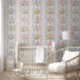Grandmillennial Stripe Floral Blue Pink Wallpaper Tapete