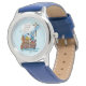 Kinderuhr aus Edelstahl mit blauem Lederarmband