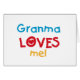 Granma Lieben Me T - Shirt, Karosseriebilder, Karten, Taschen und andere Gegenstände mit blauem, rotem und gelbem Text.