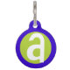Dieses runde Begleiter-Tag zeigt einen grafischen Kleinbuchstaben Ein Initial auf einem königsblauen und grünen Hintergrund. Vollständig anpassbar! Fügen Sie die persönlichen Daten Ihres Hundes auf der Rückseite hinzu, oder löschen Sie, wenn Sie es vorziehen.