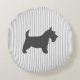 Graphite Terrier auf grauen Streifen Rundes Kissen