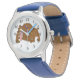 Kinderuhr aus Edelstahl mit blauem Lederarmband