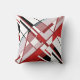 Eine kühne, energetische Medaille geometrischer Formen und Linien in Rot, Bordeaux, Grau und Weiß mit schwarzen Elementen vereinen sich zu einem diagonalen, eckigen und knusprigen abstrakten Design. Die diagonale Ebene schafft in diesem zeitgenössischen, aber im Retro-inspiriert Look, der durch den modernen Stil des Mitteljahrhunderts inspiriert wird, ein Gefühl von lebendiger Bewegung. Das Design ist lebendig und schick, ein wenig andeutend für ein geometrisches, zeitgenössisches Mosaik-Design, das ein glänzendes, aber komfortables und entspanntes Ambiente für den Wohnbereich, das Schlafzimmer, den Arbeitsbereich, die Terrasse oder die Innendekoration bietet und zudem ein Gefühl von Wärme und Entspannung bietet. Das Dekorationspotenzial dieses Akzenten, das in zahlreiche Stile (innovativ bis traditionell) passt, von Retro/Vintag über Bauernhaus bis hin zu modernem Ranch-Stil, rustikale Hacienda, urbanes Loft und Hochhaus.