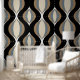 Graue schwarze Taupe Beige Tan Ogee Wave Muster Tapete