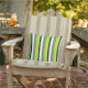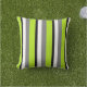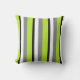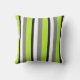 Dieses farbenfrohe Kissen im Freien weist ein gestreiftes Muster in Grau, Limon, Schwarz und Weiß auf.