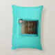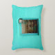 GRAUER STAHL-CONTAINER AUF FENSTER MIT AQUAMARINEM DEKOKISSEN