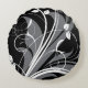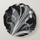 Graues Blumenmuster auf Schwarzem Rundes Kissen