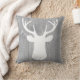 Modernes und schickes Rotwildkopfkissen mit grauem hölzernem Musterentwurf. Ultra heißer Trend in Wohngestaltung ROTWILD gehen Silhouetten voran. Fügen Sie dieses Modedekorateurkissen Ihrem vorhandenen Dekor hinzu, um Ihre einfache und schnelle Art zu aktualisieren.