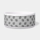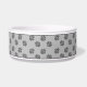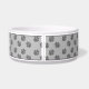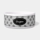 Grauer Hundehintergrund mit schwarzem Abzeichen, das einen personalisierbaren Textbereich für den Namen des Tieres hat. Der Schriftart ist ein hübscher Schriftart in weißer Schrift.