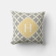 Graues Creme-und lederfarbenesmodernes Marokkaner Quatrefoil Muster-Monogramm-Wurfs-Kissen.