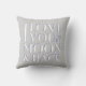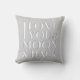 Weißer und blauer Schriftart auf grauer Throwkissenlesung "ich Liebe Sie zum Mond und zur Rückseite". Eine sehr süße Weise, i-Liebe zu sagen Sie, besonders weil der Entwurf ein wenig cooles und ein diskret ist. Dieses spielt freundlich mit der Bedeutung der Mitteilung… Indem Sie auf "klicken, fertigen Sie ihn!" besonders an Sie können mit der Hintergrundfarbe spielen.