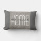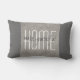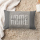 Graues Kissen mit Zitat Wohngestaltung bedrückt Hintergrund mit machen Sie sich auf Zuhause Text. Wohngestaltung.
