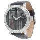 Uhr, Vintage Männeruhr mit schwarzem Lederarmband