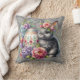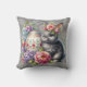 A Abstract Gray Damask Pattern With Gray Easter Bunny With Egg And Florals Throw Pillow For Your Home