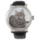 Uhr, Vintage Männeruhr mit schwarzem Lederarmband