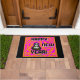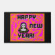 Sie können meinen Neujahrszeichn einer grauen Alien mit orangefarbenen und rosa Designs bewundern, in dem Text steht: "Frohes Neues Jahr!" Ich nenne diesen zeichn "Graue Neujahrswünsche", der auf dieser Türmatte (24" x 36" / 61 cm x 91 cm) hinzugefügt wurde, um jemandem etwas zu wünschen: "Happy New Year".