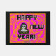 Sie können meinen Neujahrszeichn einer grauen Alien mit orangefarbenen und rosa Designs bewundern, in dem Text steht: "Frohes Neues Jahr!" Ich nenne diesen zeichn "Graue Neujahrswünsche", der auf diese Türmatte (18" x 24" / 45,7 cm x 61 cm) gelegt wurde, um jemandem etwas zu wünschen: "Happy New Year".