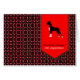 Große Däne in Schwarz und Weiß, ungewollt, auf gepunkteten Mustern in rot und schwarz, Vorlage, eigenen Text dafür verwenden.