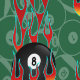 Dieses Acht Ball Wallpaper ist in einer roten Flammenfarbe bedeckt die Billard acht Ball und es gibt ein sekundäres grünes Billardkugeln Muster darunter. Sie können dieses Achtkugelmuster kleiner oder größer auf dem Wallpaper machen. Eine großartige Tapete für jeden Typ Grotte, dass Lieben Billard oder Snooker spielen.