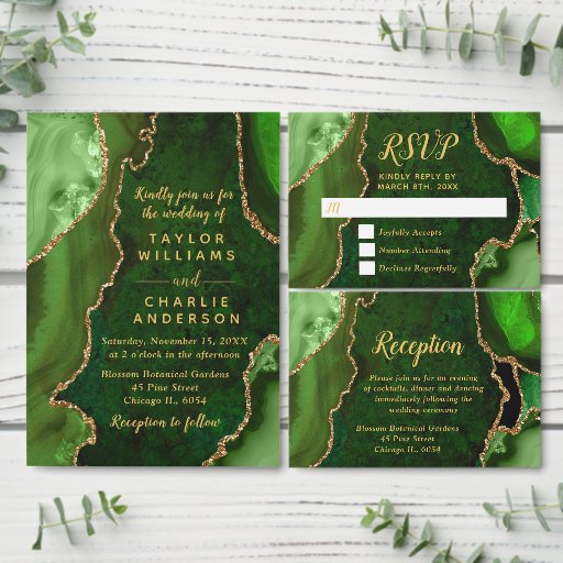 Green and Gold Agate Wedding Program Programm (Personalisiere diese Kollektion eines unabhängigen Creators.)Green and Gold Agate Wedding Program Programm (Vorderseite)Green and Gold Agate Wedding Program Programm (Rückseite)