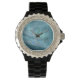 Schönes Schwarzes Emaille mit Rhinestones Watch, mit unserem Green & Blue Musiknotens Abstraktes Design