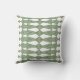 Dieses Kissen hat ein Art Deko-Design von Dreiecken und Diamanten, die wie Kleider in hellgrün und Salbei grün aussehen.