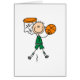 Strichmännchen männliche Basketball-Spieler T - Shirt, Tasse, Mousepads, Taschen, Halterungen, Karten, Aufkleber, Schlüsselanhänger, Knöpfe und andere Bälle mit einem Strichmännchen Basketballspieler in grüner Uniform und Basketballnetz mit Kugel.