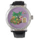 Uhr, Vintage Männeruhr mit schwarzem Lederarmband
