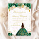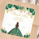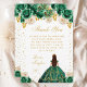 Dieses elegante und glamouröse Quinceañera danke Ihnen für Tag bietet eine schöne Prinzessin mit dunklem Haar in einem Tiara und grüne Ball Gown. Der Text kombiniert handgeschriebene Skripte mit modernen serifenlosen Schriftart für ein elegantes und raffiniertes Aussehen. Die Blumenarrangements und die Goldkonfetti bilden die perfekte Mischung aus rustikal und schick. Grafiken von www.etsy.com/uk/shop/SunflowerDayLove
