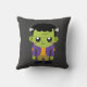 Ein Kissen mit einem lustigen Halloween-Bild mit einem grünen Frankensteinmonster.