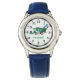 Kinderuhr aus Edelstahl mit blauem Lederarmband