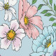 Ein kleiner grüner Drache sitzt auf einem von drei Pilzen mit Blume in blauer Umgebung