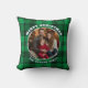 Green Personalized Family Photo Plaid Pattern Throw Pillow. Merry Christmas and a custom text. Add your photo. Personalize the text any way you wish or delete it. The background features a green plaid pattern. Great as a Christmas gift or a keepsake pillow for the family.