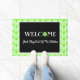 Grüne Pickleball-Kugeln für den Pickleball-Liebhaber. Weiße Hintergründe mit orangefarbenen Pickleballs. Diese bouncy Grafik macht eine phantastische Wohngestaltung willkommen Pickleball Doormat mit einem grünen Pickleball Ball ersetzt das O in Welcome mit der Warnung oft gehört in pickleball - bleibe aus der Küche. (Aber wirklich, man könnte sich den ganzen Tag in der Küche NVZ aufhalten, einfach nicht den Ball in der Luft schlagen, wenn man da drin ist.)