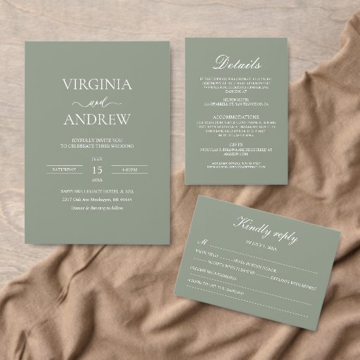 Sage Green Wildflower Boho Wedding Invitation with a Modern Monogram. Easily personalize by replacing each detail, and be sure to review the preview before adding it to your cart.