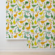 Modern goose wallpaper with lots of green and yellow geese in different poses.