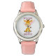 Kinderuhr aus Edelstahl mit rosa Lederarmband