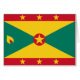 Flagge von Grenada. Die Nationalflagge Grenadas wurde nach der Unabhängigkeit vom Vereinigten Königreich am 7. Februar 1974 adoptiert. Die sechs Sterne in der roten Grenze stehen für die sechs Gemeinden des Landes, mit dem mittleren Stern, umgeben von einer roten Scheibe, stehend für die Hauptstadt, Saint George's. Das Symbol in der Hütte stellt eine Nussmeg-Nuss dar, eine der Hauptkulturen von Grenada. Es stellt auch einen Link zu Grenadas früherem Namen dar, der die "Insel der Gewürze" war. Die Farbkombination von Rot, Gold und Grün in der Flagge ist repräsentativ für die afrikanische Identität des Landes. Rot steht für Mut und Vitalität, gelb für Weisheit und Wärme, grün für Vegetation und Landwirtschaft.