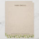 Ein erdig Bio Letterhead-Design, das einen hellen Hintergrund aus Kraftpapier hat (kein echtes Kraftpapier, es ist eine simulierte Faserstruktur) und auf beiden Seiten einen grünen Blattrand hat. Ideal für alle Geschäfte in der Bio Industrie, Floristen, Kräuterinnen, Botaniker, Gesundheitsläden, ätherische Ölwarenläden, Lauberhäuser und alle, die eine Naturmarke für ihr Geschäft gewollt haben.