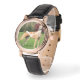 Uhr, Vintage Männeruhr mit schwarzem Lederarmband