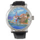 Uhr, Vintage Männeruhr mit schwarzem Lederarmband