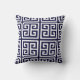 Griechisches Eckmuster Weiß auf Navy Blue Kissen