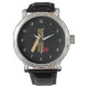 Uhr, Vintage Männeruhr mit schwarzem Lederarmband