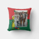 This pillow is the perfect blend of cozy and mischievous! This fun, customized throw cushion is framed with a bold red and green diagonal stripe pattern and features a large center space for your favorite family photo. Standing watch is the full-body grumpy Grinch in his nightcap, looking like he's hatching a sneaky plan! With cheerful presents and stockings decorating the frame, this pillow is the perfect whimsical accent for your holiday seating!