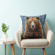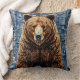Lebhafte Kunstwerke, die einen Bären mit einem reichhaltigen, strukturierten Pelzmantel darstellen, Set vor einem Flickwerk in Blau- und Grautönen. Der Bär ist imposant und lebensecht und erobert die Aufmerksamkeit mit seinen realistischen Merkmalen.
